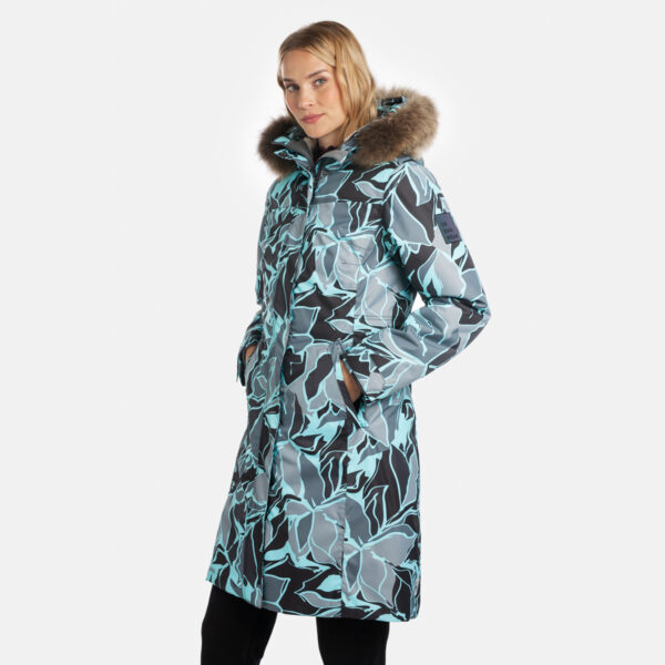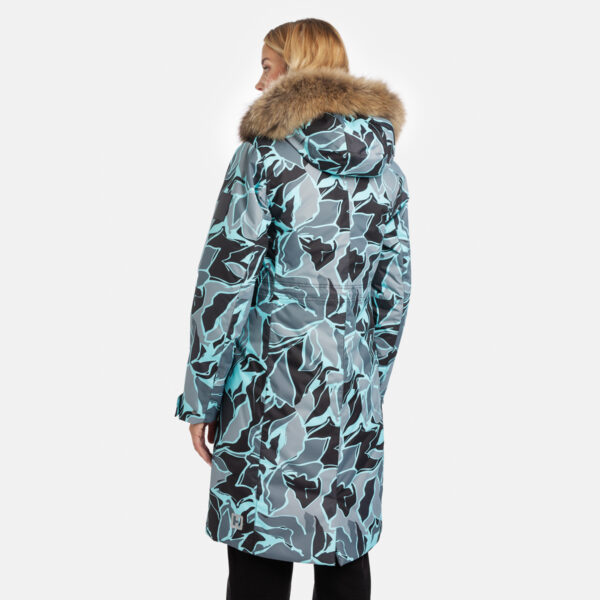 Women’s water- and windproof winter parka with 200 g insulation. Breathable outer fabric. Soft fabric on the inside of the parka. Sheepskin imitation lining at the upper back and inside of the hood. Adjustable hood. Ribbed cuffs on sleeves. Adjustable sleeve cuffs. Front two-way zipper with a snap button placket. Rubber cord tunnel with stoppers on the waistband. Waterproof taped seams. Detachable natural fur trim on hood. Reflective detailing on outer fabric.