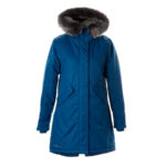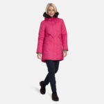 Women’s waterproof and windproof winter parka. Breathable fabric. Soft fabric on the inside. Faux sheepskin lining at the top of the back and inside the hood. Adjustable hood. Ribbed cuffs at sleeve ends. Lapped two-way zipper at front. Magnetic fastening on flap pockets. Drawstring tunnel with stoppers on waist for adjusting the waist from the inside. Waterproof taped seams. Removable faux fur trim on hood. Reflective elements on fabric.