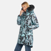Sieviešu ūdens un vēja necaurlaidīga ziemas jaka. Gaisu caurlaidīgs virsējais audums. Jakas odere no mīksta auduma. Muguras augšdaļā un kapuces iekšējos sānos jērādas imitācijas odere. Regulējama kapuce. Rievotas piedurknes. Priekšpusē apšūts divvirziena rāvējslēdzējs. Magnētiski aizdarāmas kabatas. Jostas vietā aizdare ar stoperi, jostasvieta regulējama no iekšpuses. Ūdens necaurlaidīgi līmēti izšuvumi. Kapucei noņemama mākslīgās kažokādas mala. Auduma virspusē atstarojošas detaļas.