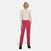 Women’s windproof Softshell pants. Brushed soft on the inside. Buttonhole-adjustable waist. Integrated zippered pockets. Reflective logo on lower leg.