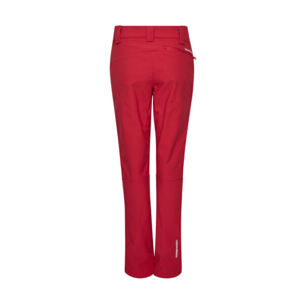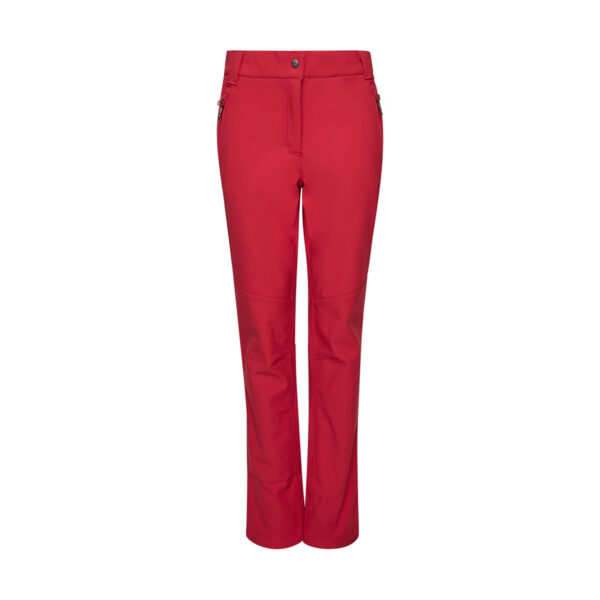 Women’s windproof Softshell pants. Brushed soft on the inside. Buttonhole-adjustable waist. Integrated zippered pockets. Reflective logo on lower leg.