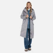 Loose cut water- and windproof ShellProtect coat for women. ShellProtect fabric is an innovative, three-layer material, therefore the product does not have a lining. Adjustable hood and sleeve cuffs. Waterproof taped seams. Rubber cord tunnel with stoppers on the waistband. Front two-way zipper with a snap button placket. Reflective elements on fabric.