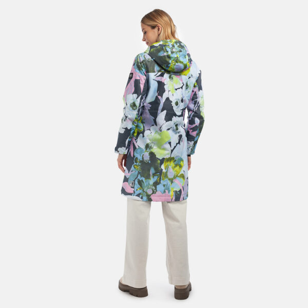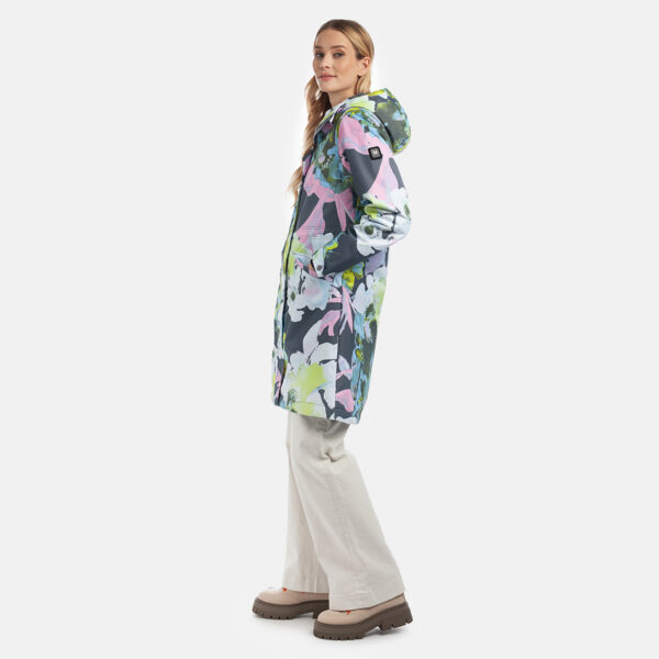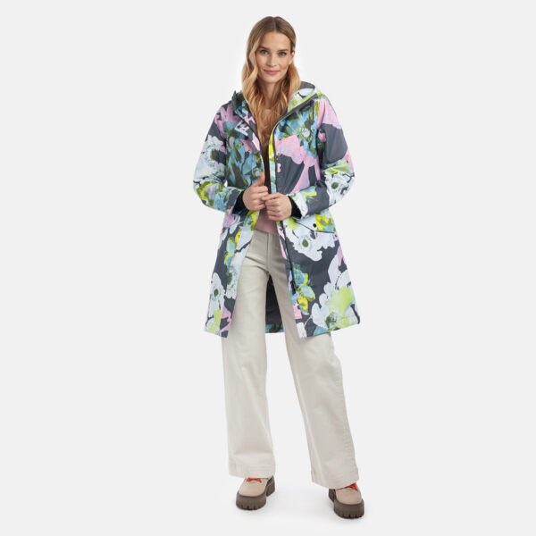 Insulated (40 g) water- and windproof parka for women, suitable for spring and autumn. The outer fabric is breathable. The lining of the parka is soft. Adjustable hood and sleeve cuffs. Adjustable waist with stoppers. Waterproof taped seams. The outer fabric is decorated with reflective details.