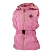 Tyttöjen söpö liivi kevyellä vanulla (120 g ). Kauniisti tikattu ja hienosti kirjailtu liivi on varustettu kevyellä taftivuorella. Käyttömukavuutta lisäävät säädettävä kumivyö vyötäröllä sekä irrotettava huppu, joka suojaa sateelta ja tuulelta. Turvallisuutta lisäävät heijastavat yksityiskohdat hupun saumoissa ja selkäosan alareunassa. Lisätty on myös erillinen lenksu heijastinta varten. Etuosaa koristelevat kaksi hienoa taskua, johon pikkuneiti voi piillottaa kaiken tärkeän. Liivillä on myöskin vetoketjullinen sisätasku, johon voi laittaa kaiken erityisen arvokkaan.