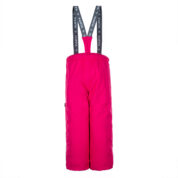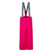 Lasten housut. Housut ovat veden- ja tuulenpitävät. Hengittävä ulkokangas. Housujen sisäkerros on pehmeää vuorikangasta. Irrotettavat säädettävät joustavat olkaimet. Vyötäröllä integroitu laaja kuminauha. Lahkeiden suissa kuminauhakuja stoppareilla. Vedenpitävä teipattu istuinsauma. Ulkokankaassa heijastavat yksityiskohdat.