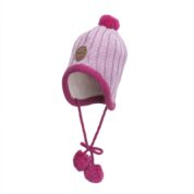 Taaperoiden joustinneulepipo. Ihoystävällinen puuvillainen trikoovuori tekee piposta todella mukavan. Pipo kiinnitetään ihanien tupsuilla varustettujen nauhojen avulla, jotta se suojaisi lasta tehokkaasti kylmältä tuulelta.