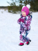 Pikkulasten upea haalari lämpimällä vanulla ja vahvasta kankaasta jokapäiväisiin tekemisiin. 300 g:n eristys. Haalarissa on pehmeä puuvillainen flanellivuori ja meidän ilmastoon sopiva hengittävä ja vettähylkivä päällyskangas. Muksujen pukeminen on helppoa kahden vetoketjun ansiosta. Teipatut saumat antavat lapsille mahdollisuuden nauttia lämmöstä ja kuivuudesta myös pyllähtäessään lumihankeen. Muksujen lempihaalarissa on poistettava huppu irrotettavalla tekoturkisreunalla,silikoniset jalkalenkit (mukana myös kumilenkit). Haalarin läpileikkauksiin on lisätty heijastavia yksityiskohtia, jotka tekevät myös pimeän aikana liikkumisesta turvallisen. Koon 80 asti pystyy kääntämään hihan- ja lahkeensuut suojaamaan pieniä käsiä ja jalkoja, joten rukkasia ja töppösiä ei välttämättä tarvita.