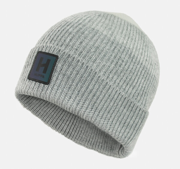 Lasten merinovillasta ja akryylista neulottu pipo heijastavalla Huppa-logolla.