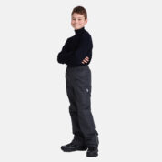 Lasten veden- ja tuulenpitävät housut 40 gramman toppauksella. Leveä vyötärökuminauha. Vyötärön leveys säädettävissä. Vedenpitävät teipatut saumat. Heijastava logo lahkeen alaosassa.