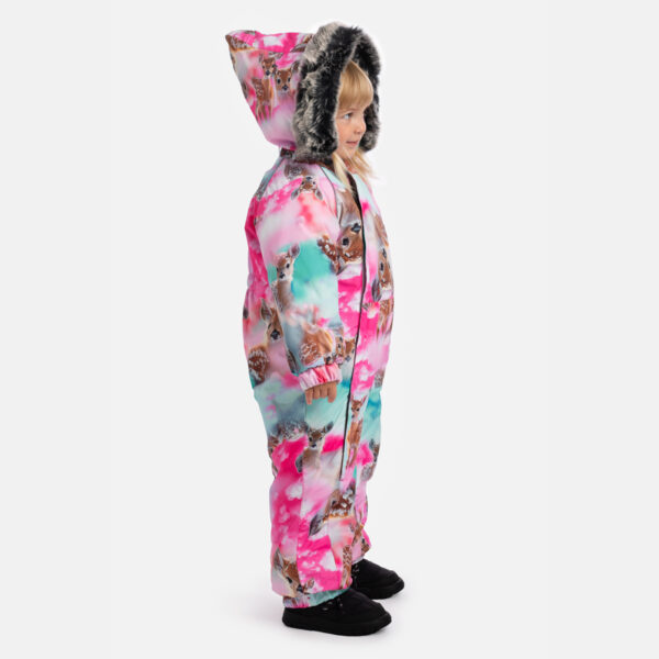 Lasten veden- ja tuulenpitävät haalarit (300g). Hengittävä ulkokangas. Sopii sekä vauvoille että taaperoille, jotka jo kävelevät. Haalarin sisäpuolella on pehmeä ja mukava flanellivuorikangas. Hihan- ja lahkeensuissa sisäänrakennettu kuminauha. Irrotettava huppu kiinnittyy kaulukseen tarranauhalla varmistaakseen turvallisuuden jumiutuessa. Kätevät käännettävät hihan- ja lahkeensuut koossa 68–80. Vedenpitävät teipatut saumat. Haalareissa ei ole sisäsaumaa lahkeessa. Tuotteessa on joustavat kumipohjat. Irrotettava tekoturkisreuna hupussa. Pimeässä ulkokankaan heijastavat yksityiskohdat lisäävät turvallisuutta.