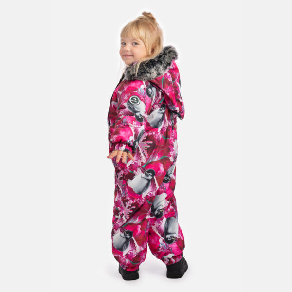 Lasten veden- ja tuulenpitävät haalarit (300g). Hengittävä ulkokangas. Sopii sekä vauvoille että taaperoille, jotka jo kävelevät. Haalarin sisäpuolella on pehmeä ja mukava flanellivuorikangas. Hihan- ja lahkeensuissa sisäänrakennettu kuminauha. Irrotettava huppu kiinnittyy kaulukseen tarranauhalla varmistaakseen turvallisuuden jumiutuessa. Kätevät käännettävät hihan- ja lahkeensuut koossa 68–80. Vedenpitävät teipatut saumat. Haalareissa ei ole sisäsaumaa lahkeessa. Tuotteessa on joustavat kumipohjat. Irrotettava tekoturkisreuna hupussa. Pimeässä ulkokankaan heijastavat yksityiskohdat lisäävät turvallisuutta.