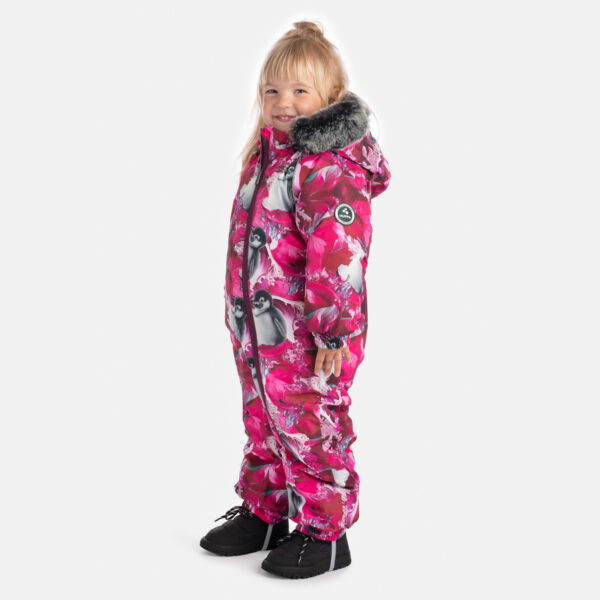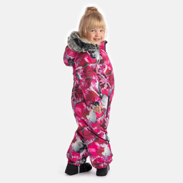 Vauvojen veden- ja tuulenpitävä talvihaalari 300 g eristeellä. Hengittävä kangas ja pehme flanellivuori sisäpuolella takaavat mukavuuden koko päiväksi. Käytännöllisesti suunnitellussa haalarissa on joustavat hihan- ja lahkeensuut sekä joustava vyötärö takana. Irrotettava nepparikiinnitteinen huppu on turvallinen. Koissa 68–80 hihan- ja lahkeensuut voidaan kääntää pidemmäksi pidennettyä käyttöä varten. Täysin teipatut vedenpitävät saumat, hupun tekoturkisreunus ja heijastavat yksityiskohdat ulkokankaassa viimeistelevät muotoilun mukavuuden, turvallisuuden ja tyylin puolesta.