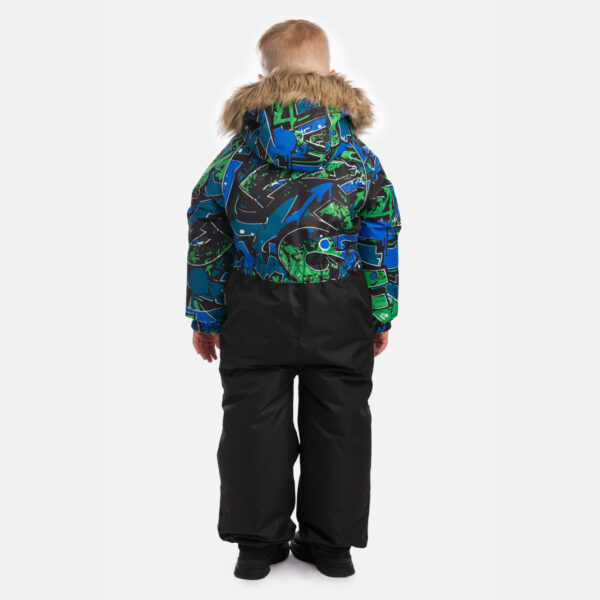 Lasten veden- ja tuulenpitävät haalarit. Hengittävä ulkokangas. Haalarin sisäpuoli on pehmeää kangasta. Hihan- ja lahkeensuissa sisäänrakennettu kuminauha. Irrotettava huppu kiinnittyy kaulukseen tarranauhalla. Vedenpitävät teipatut saumat. Tuotteessa on joustavat kumipohjat. Ulkokankaassa heijastavat yksityiskohdat.