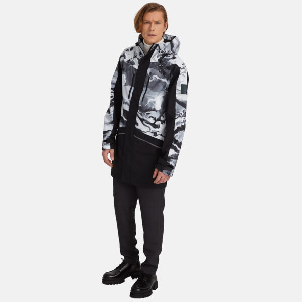 Miesten veden- ja tuulenpitävä ShellProtect takki. ShellProtect -kangas on innovatiivinen, kolmikerroksinen materiaali, joten tuotteessa ei ole vuorta. Säädettävä huppu ja hihansuut. Vedenpitävät teipatut saumat. Etukiinnityksessä nepparilistalla peitetty kaksisuuntainen vetoketju. Ulkokankaassa heijastavia yksityiskohtia.