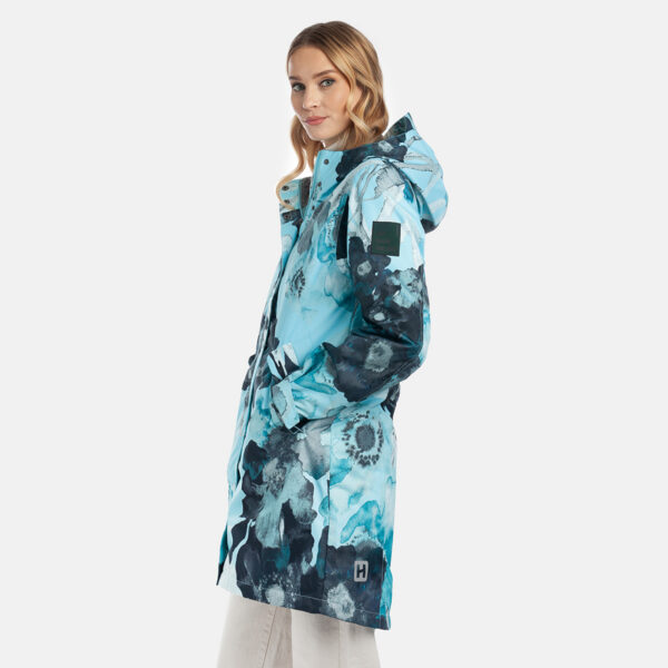 Naisten veden- ja tuulenpitävä parkatakki kevät- ja syyskaudelle 40 g toppauksella. Hengittävä ulkokangas. Parkan sisäpuoli on valmistettu pehmeästä vuorikankaasta. Säädettävä huppu ja hihansuut. Vyötäröllä säädettävä kiristysnauha. Vedenpitävät, teipatut saumat. Ulkokankaassa heijastavat yksityiskohdat.
