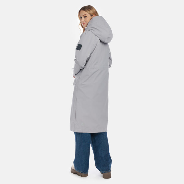 Väljä naisten veden- ja tuulenpitävä ShellProtect takki. ShellProtect -kangas on innovatiivinen, kolmikerroksinen materiaali, joten tuotteessa ei ole vuorta. Säädettävä huppu ja hihansuut. Vedenpitävät teipatut saumat. Vyötäröllä säädettävä kiristysnauha. Etukiinnityksessä nepparilistalla peitetty kaksisuuntainen vetoketju. Ulkokankaassa heijastavia yksityiskohtia.
