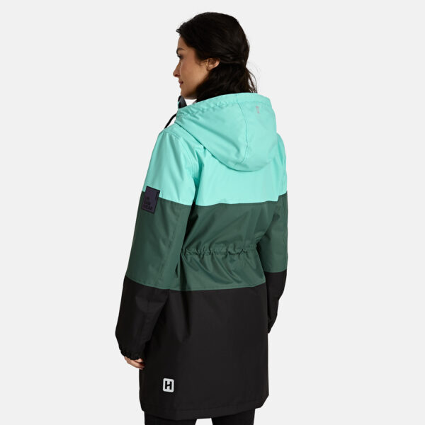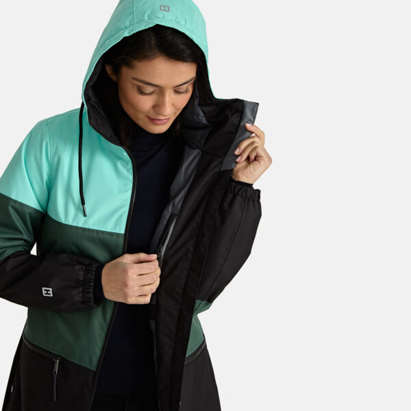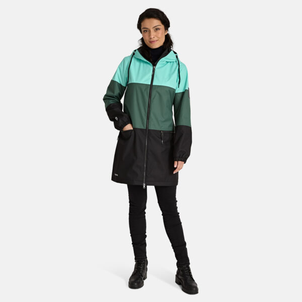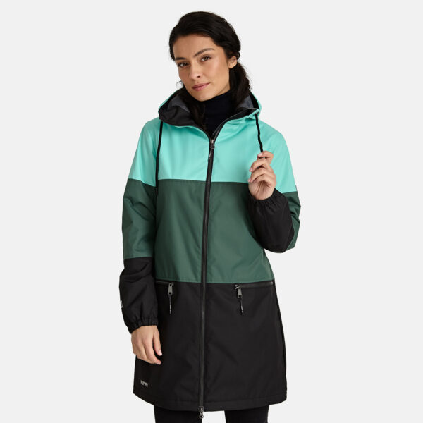 Naisten kevät- ja syysparka. Veden- ja tuulenpitävä 40 g:n eristys. Hengittävä ulkokangas. Sisäpuoli pehmeästä vuorikankaasta. Kiristysnyöri hupun reunassa. Sisäänommeltu kuminauha hihansuissa. Vyötäröllä stopperillinen kuminauhakuja. Vedenkestävät teipatut saumat. Heijastavia yksityiskohtia.