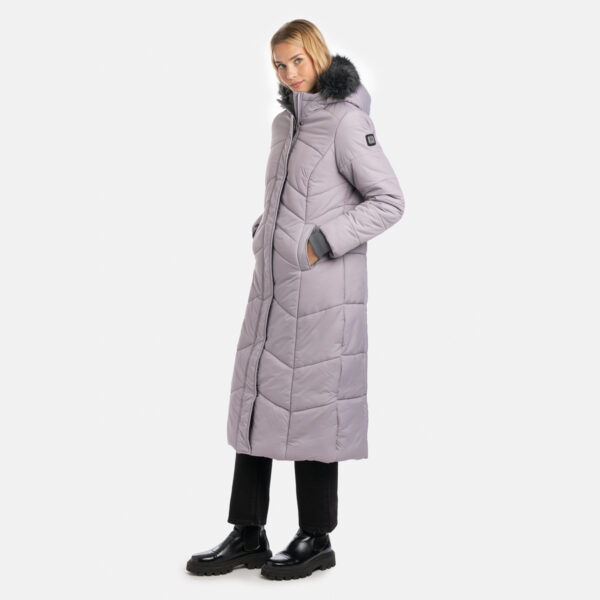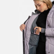 Naisten vettähylkivä ja tuulenpitävä talvitakki 300 g eristeellä, joka pitää sinut lämpimänä ja suojassa kylmissä olosuhteissa. Hengittävä päällikangas on valmistettu kierrätetyistä kuiduista ja pehmeä vuori sisäpuolella lisää käyttömukavuutta. Hupussa on irrotettava tekoturkis, joka tuo muunneltavuutta tyyliin. Resorilliset hihansuut tarjoavat lisälämpöä. Kaksisuuntainen etuvetoketju nepparikiinnitteisellä suojalistalla tuo käytännöllisyyttä ja suojaa. Heijastavat yksityiskohdat ulkokankaassa parantavat näkyvyyttä pimeässä.