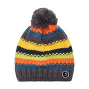 Pehmeästä langasta neulottu lasten hattu, jossa fleecevuori. Heijastava Huppa-logo hatussa.