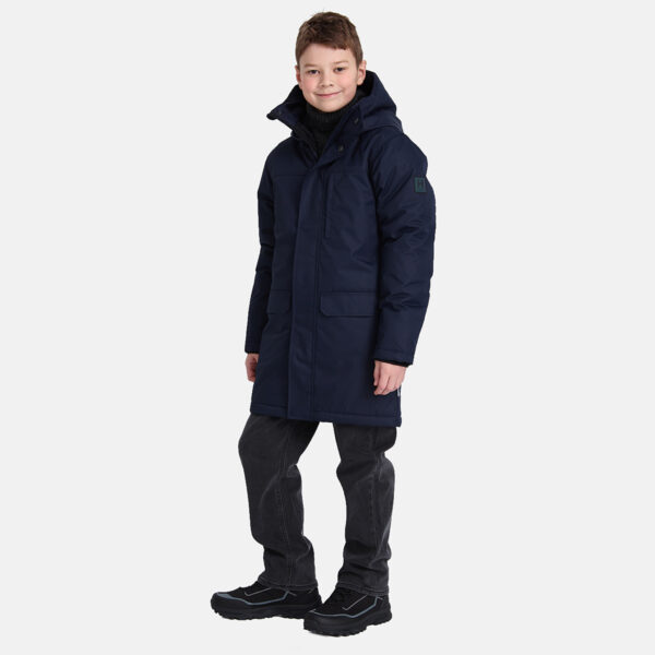 Poikien veden- ja tuulenpitävä parkatakki 140 g toppauksella. Hengittävä ulkokangas. Pehmeä vuorikangas. Hihansuissa pehmeä ribbikangas. Etukiinnityksessä nepparilistalla peitetty kaksisuuntainen vetoketju. Ulkokankaassa heijastavia yksityiskohtia.