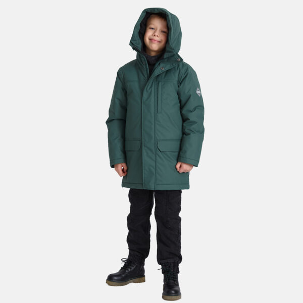Poikien veden- ja tuulenpitävä parkatakki 140 g toppauksella. Hengittävä ulkokangas. Pehmeä vuorikangas. Hihansuissa pehmeä ribbikangas. Etukiinnityksessä nepparilistalla peitetty kaksisuuntainen vetoketju. Ulkokankaassa heijastavia yksityiskohtia.