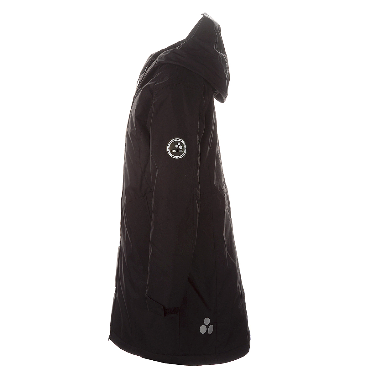 Tyttöjen parka 140 g eristyksellä. Parkan kädentie- ja kaula-aukko sekä huppu ja olkasaumat on teipattu vedenpitäväksi. Vyötäröllä on kuminauhakiristys. Edessä taskut. Parkassa on myös vetoketjullinen sisätasku. Parkan etuvetoketju avautuu kahteen suuntaan, mikä tekee istumisesta mukavampaa.