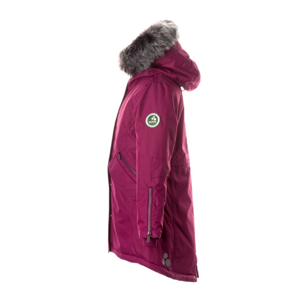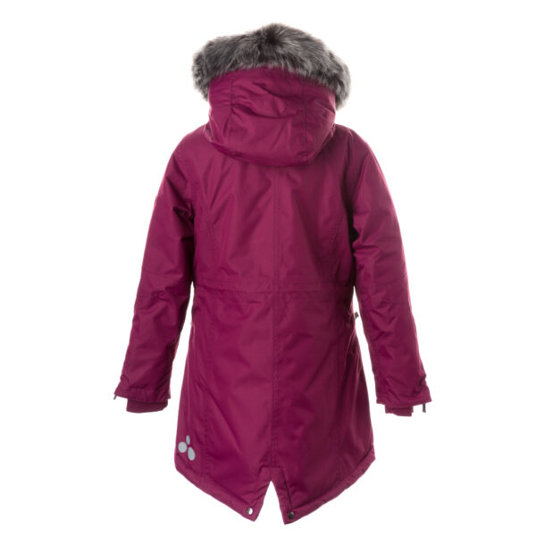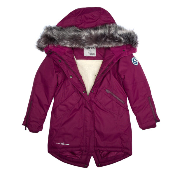 Lasten veden- ja tuulenpitävä talviparka 200 g eristyksellä. Hengittävä ulkokangas. Parkan sisäpuoli on pehmeää kangasta. Lampaannahkajäljitelmävuori yläselässä ja hupun sisäpuolella. Säädettävä huppu. Resorit hihansuissa. Kaksisuuntainen vetoketju, joka on peitetty painintangolla edessä suljettaessa. Magneettisuljetut läpälliset taskut. Kuminauhatunneli vyötäröllä. Vedenpitävät teipatut saumat. Irrotettava tekoturkisreuna hupussa. Ulkokankaassa heijastavat yksityiskohdat.