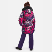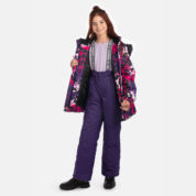 Lasten takki ja housut -setti. Veden- ja tuulenpitävä, hengittävä ulkokangas. Takin ja housujen sisäpuoli on valmistettu pehmeästä vuorikankaasta. Hihojen päissä ja vyötäröllä integroitu kuminauha. Irrotettava huppu kiinnittyy kaulukseen tarranauhalla. Irrotettava tekoturkisreuna hupussa. Housuissa on irrotettavat säädettävät joustavat olkaimet. Joustava vyötärönauha. Jalkojen päissä lumilukot. Kuminauhatunneli, jossa tulpat jalkojen päissä. Vedenpitävät teipatut saumat. Sekä takissa että housuissa on heijastavia yksityiskohtia.