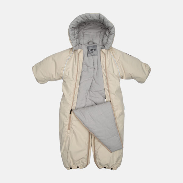 Vauvojen veden- ja tuulenpitävät makuupussihaalarit 300 g eristeellä. Hengittävä ulkokangas. Haalarin sisäpuoli on vuorattu flanellikankaalla. Teddyturkisvuori hupussa. Hihan- ja lahkeensuissa sisäänrakennettu kuminauha. Mukavat käännettävät hihanpäät. Kaksi pitkää vetoketjukiinnitystä edessä. Tarvittaessa jalkojen päät voidaan sulkea Trukk-kiinnikkeiden avulla. Tuotteessa on joustavat kumipohjat. Haalari voidaan muuntaa makuupussiksi pohjassa olevien lukkojen avulla. Ulkokankaaseen lisätyt heijastavat yksityiskohdat takaavat turvallisuuden pimeässä.