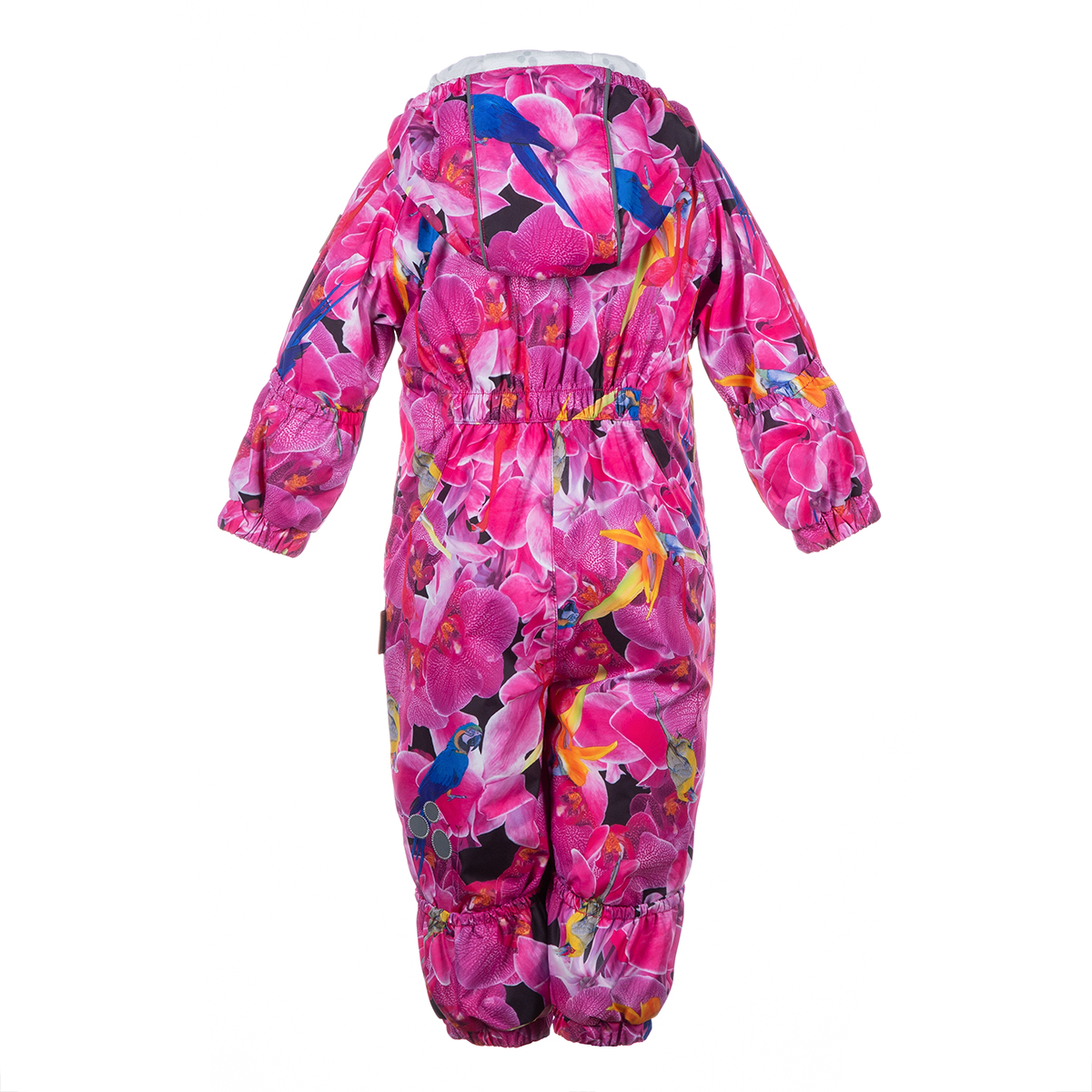 Pikkulasten suloinen välikausihaalari kevyellä vanulla (100g), joka sopii mainiosti käytettäväksi varhain keväällä ja myöhään syksyllä. Haalarilla on mukava ja pehmeä puuvillainen flanellivuori. Pikkuseikkailijoiden lempihaalarilla on kaksi pitkää vetoketjua, jotka helpottavat pukemista. Neppareilla kiinnitetty, helposti irrotettava huppu lisää turvallisuutta. Kaikkien 62-80cm kokoisten haalareiden hihansuita ja lahkeita pystyy kääntämään pikkuisten käsien ja jalkojen yli siten, ettei vaunumatkan aikana tarvita käsineitä ja jalkineita ollenkaan. Teipatut alaosan saumat antavat pikkuiselle mahdollisuuden nauttia kuivuudesta ja lämmöstä. Haalarin silikoniset, poistettavat jalkalenksut estävät veden pääsyn saappaaseen. Turvallisuutta pimeän aikana lisäävät heijastavat yksityiskohdat.