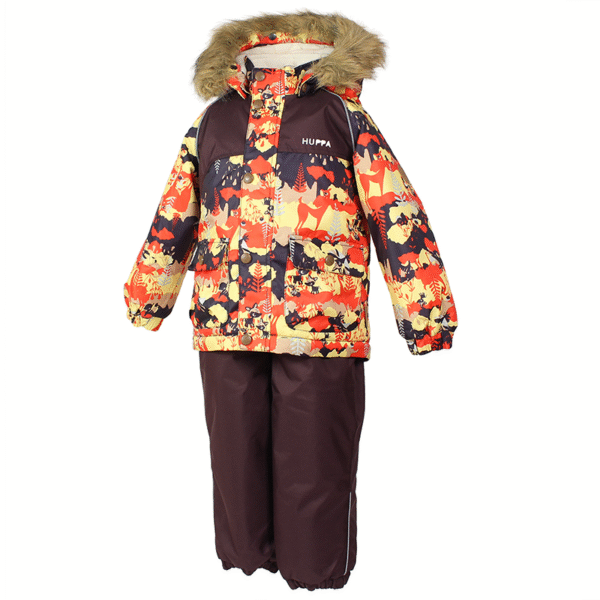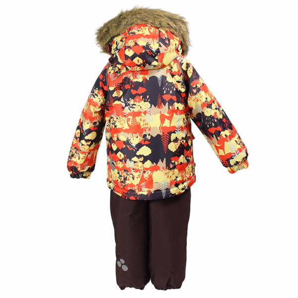 Children´s winter set. The jacket has 200 g of insulation, the pants have 160 g of insulation. The jacket has a soft „Coral-fleece” lining in the body and taffeta lining in the sleeves. The high-waisted pants also have a pleasant „Coral-fleece” lining and elastic on the back for more comfortable wearing. Taped seat and side seams allow the toddler to enjoy the winter joys without worry and at the same time stay dry and warm. Removable hood with fur, adjustable elastic suspenders and two pockets.