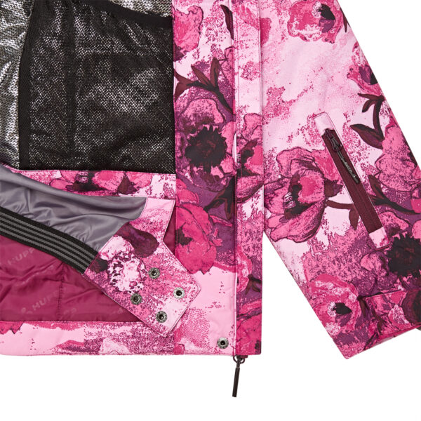 Women´s winter jacket. The wind and water resistant outer fabric of the jacket has the best technical characteristics and the insulation is 200g. The ribbed inner cuffs in the jacket sleeves and the snow guard keep you warm and dry even when doing sports. The jacket is lined with heat-reflecting HUPPATEC fabric.