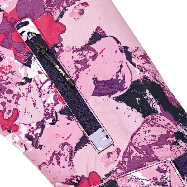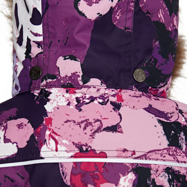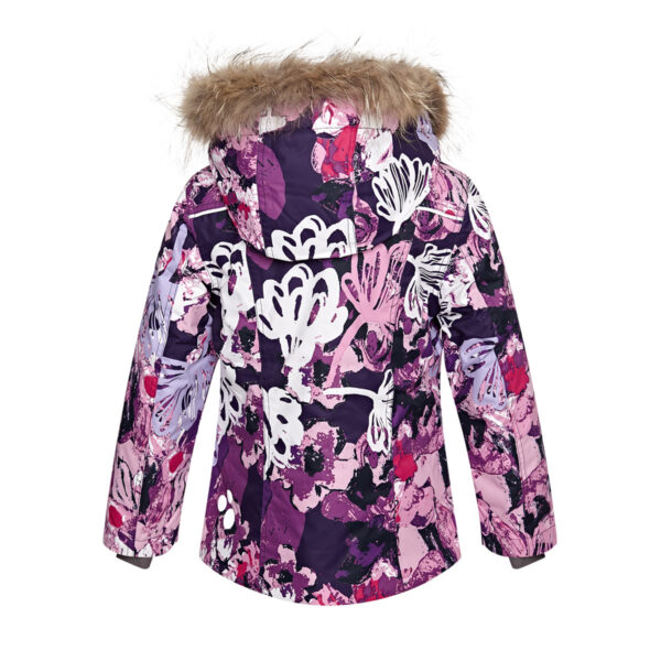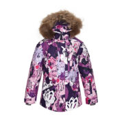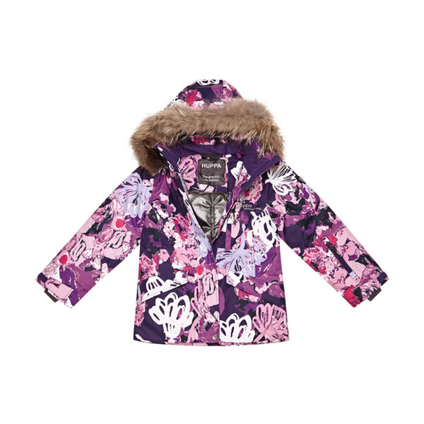 Girls´ winter jacket. The wind and water resistant outer fabric of the jacket has the best technical characteristics and the insulation is 200g. The ribbed inner cuffs in the jacket sleeves and the snow guard keep you warm and dry even when doing sports. The jacket is lined with heat-reflecting HUPPATEC fabric.