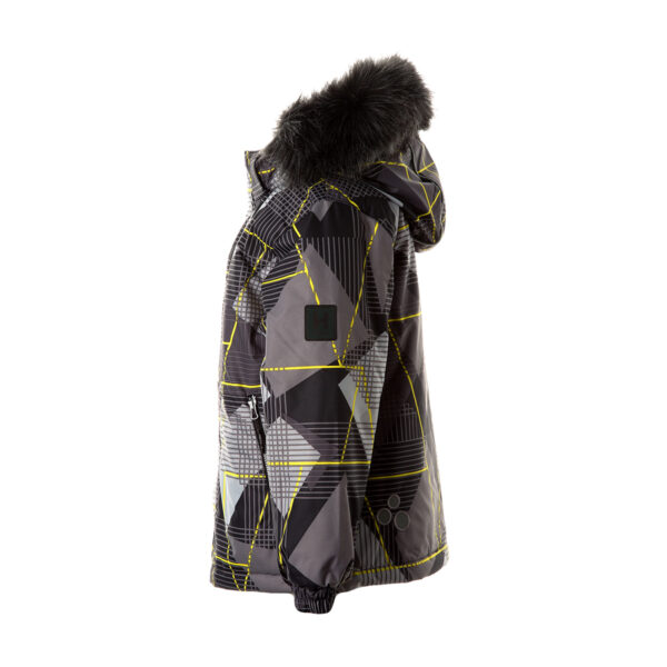 Vaikiška vandenį ir vėją sulaikanti striukė Orui laidi išorinė medžiaga Vidinė striukės dalis iš minkšto pamušalinio audinio Nuimamas gobtuvas prie apykaklės prisegamas kibiu lipduku Rankovių apačioje įsiūta guminė juostelė Priekyje juostele dengtas užtrauktukas Priekyje įsiūtos kišenės su užtrauktuku Vandeniui atsparios siūlės Gobtuvas apkraštuotas nuimamu dirbtiniu kailiu Viršutinis audinys su šviesą atspindinčiomis detalėmis