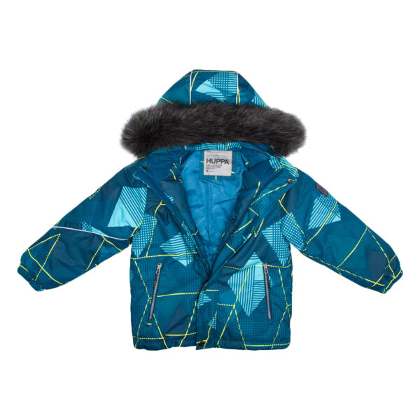 Vaikiška vandenį ir vėją sulaikanti striukė Orui laidi išorinė medžiaga Vidinė striukės dalis iš minkšto pamušalinio audinio Nuimamas gobtuvas prie apykaklės prisegamas kibiu lipduku Rankovių apačioje įsiūta guminė juostelė Priekyje juostele dengtas užtrauktukas Priekyje įsiūtos kišenės su užtrauktuku Vandeniui atsparios siūlės Gobtuvas apkraštuotas nuimamu dirbtiniu kailiu Viršutinis audinys su šviesą atspindinčiomis detalėmis