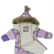 Vaikų žiemos kombinezonas. Kombinezonas turi minkštą medvilnės flanelės pamušalą ir kvėpuojantį bei vandeniui nepralaidų viršutinį audinį, kuris puikiai tinka mūsų klimatui. Mažylį lengva aprengti dėl dviejų per visą ilgį užtrauktukų. Klijuotos sėdynės ir šoninės siūlės leidžia jūsų mažyliui veikti be rūpesčių ir tuo pat metu mėgautis sausumo ir šilumos pojūčiu. Mėgstamiausias mažylių kombinezonas turi nuimamą kailio gobtuvą, kišenę skanėstams laikyti ir silikoninę gumą po padu. Iki 86 dydžio rankovių galus galima užlankstyti keliais judesiais ir pirštinių nereikia.