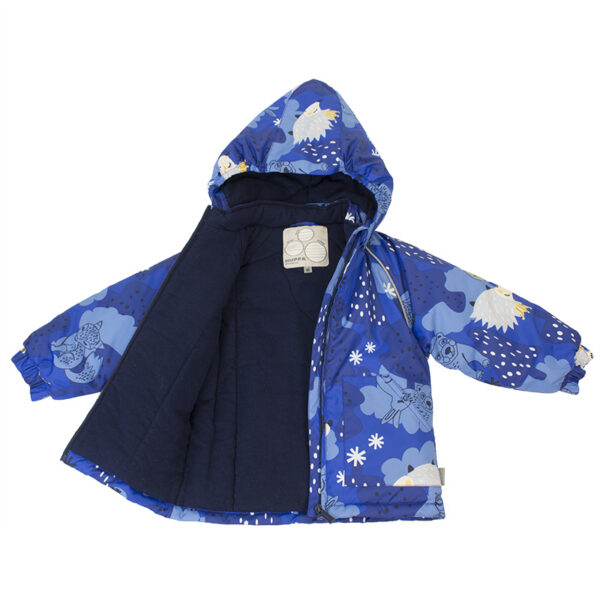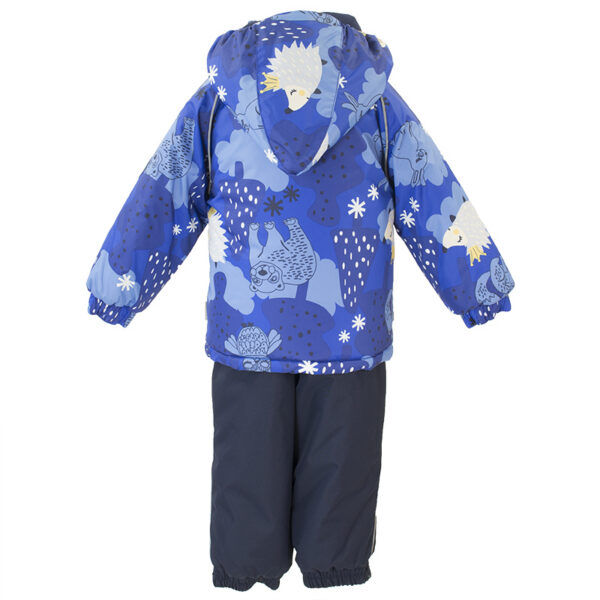 Vaikų žiemos komplektas. Komplekte yra malonus minkštas medvilnės flanelio pamušalas ir kvėpuojantis bei nepermirkstantis išorinis audinys, kuris puikiai tinka mūsų klimatui. Striukė turi 200g, o kelnės – 100g šildomosios medžiagos. Aukštu liemeniu kelnės turi suklijuotą sėdynės siūlę, todėl mažylis gali džiaugtis žiemos pramogomis nesirūpindamas ir kartu išlikti sausas bei šiltas. Patogesniam nešiojimui komplekte yra nuimamas kailinis gobtuvas, reguliuojamos elastinės petnešos ir du puikūs kišeniai radinių saugojimui. Atšvaitai iškirptuose leidžia saugiai žaisti net ir tamsoje.