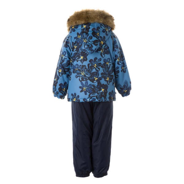 Vaikų žiemos komplektas. Komplektas turi malonų minkštą medvilnės flanelės pamušalą ir kvėpuojantį bei vandeniui nepralaidų viršutinį audinį, kuris puikiai tinka mūsų klimatui. Striukė turi 300 g, o kelnės 160 g šiltumo izoliacijos. Aukštu liemeniu kelnės turi klijuotą sėdynės siūlę, kuri leidžia mažyliui be rūpesčių mėgautis žiemos džiaugsmais ir tuo pat metu išlikti sausam ir šiltam. Patogesniam nešiojimui komplektas turi nuimamą kailinio kaišio gobtuva, reguliuojamas gumines petnešas ir dvi puikias kišenes radiniams laikyti. Atšvaitinės detalės iškirptuose padeda saugiai žaisti net tamsoje.