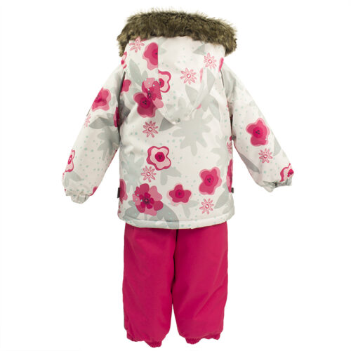 Dviejų dalių komplektas kūdikiams yra idealus triukšmauti sniege! Didelis spalvų ir raštų pasirinkimas. Komplekto pamušalas yra minkštos medvilninės flanelės, o išorinis audinys atsparus vėjui ir vandeniui. Striukė turi 300 g pašiltinimą, o kelnės – 160 g, kad būtų patogu dėvėti. Norėdami užtikrinti sausumą, kelnių sėdimosios dalies siūlės yra klijuotos, kelnės paaukštintu liemeniu, jų apačios viduje taip pat apsiūtos viršutiniu audiniu. Nuimamas gobtuvas su sintetiniu kailiuku yra saugus žaisti lauke – jis tvirtinamas kniedėmis. Kelnės turi reguliuojamas gumines petnešas. Netrukus kieme prasidės šėlsmas!