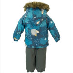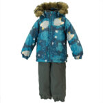 Dviejų dalių komplektas kūdikiams yra idealus triukšmauti sniege! Didelis spalvų ir raštų pasirinkimas. Komplekto pamušalas yra minkštos medvilninės flanelės, o išorinis audinys atsparus vėjui ir vandeniui. Striukė turi 300 g pašiltinimą, o kelnės – 160 g, kad būtų patogu dėvėti. Norėdami užtikrinti sausumą, kelnių sėdimosios dalies siūlės yra klijuotos, kelnės paaukštintu liemeniu, jų apačios viduje taip pat apsiūtos viršutiniu audiniu. Nuimamas gobtuvas su sintetiniu kailiuku yra saugus žaisti lauke – jis tvirtinamas kniedėmis. Kelnės turi reguliuojamas gumines petnešas. Netrukus kieme prasidės šėlsmas!
