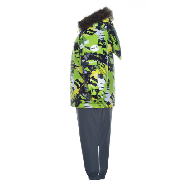 Dviejų dalių komplektas kūdikiams yra idealus triukšmauti sniege! Didelis spalvų ir raštų pasirinkimas. Komplekto pamušalas yra minkštos medvilninės flanelės, o išorinis audinys atsparus vėjui ir vandeniui. Striukė turi 300 g pašiltinimą, o kelnės – 160 g, kad būtų patogu dėvėti. Norėdami užtikrinti sausumą, kelnių sėdimosios dalies siūlės yra klijuotos, kelnės paaukštintu liemeniu, jų apačios viduje taip pat apsiūtos viršutiniu audiniu. Nuimamas gobtuvas su sintetiniu kailiuku yra saugus žaisti lauke – jis tvirtinamas kniedėmis. Kelnės turi reguliuojamas gumines petnešas. Netrukus kieme prasidės šėlsmas!