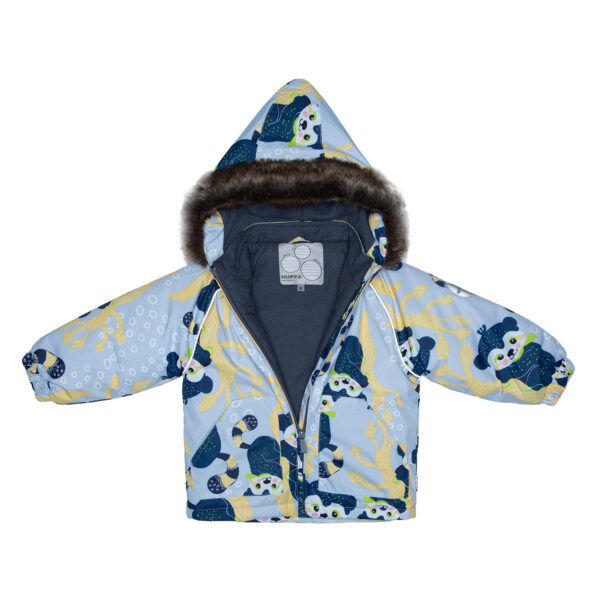 Children´s winter set. The set has a nice soft cotton flannel lining and breathable and waterproof outer fabric that is well suited to our climate. The jacket has 300g and the pants have 160g of insulation. The high-waisted pants have a taped seat seam, which allows the toddler to enjoy winter joys without worry and stay dry and warm at the same time. For more comfortable wearing, the set has a removable fur hood, adjustable elastic suspenders and two great pockets for storing finds. Reflective details in the cutouts allow for safe play even in the dark.