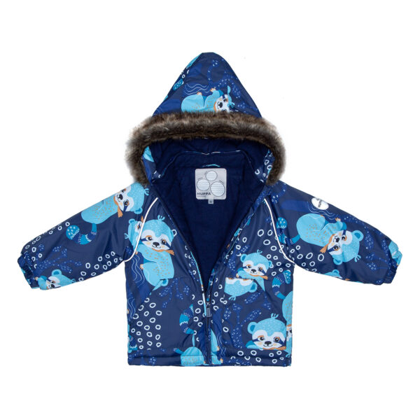 Dviejų dalių komplektas kūdikiams yra idealus triukšmauti sniege! Didelis spalvų ir raštų pasirinkimas. Komplekto pamušalas yra minkštos medvilninės flanelės, o išorinis audinys atsparus vėjui ir vandeniui. Striukė turi 300 g pašiltinimą, o kelnės – 160 g, kad būtų patogu dėvėti. Norėdami užtikrinti sausumą, kelnių sėdimosios dalies siūlės yra klijuotos, kelnės paaukštintu liemeniu, jų apačios viduje taip pat apsiūtos viršutiniu audiniu. Nuimamas gobtuvas su sintetiniu kailiuku yra saugus žaisti lauke – jis tvirtinamas kniedėmis. Kelnės turi reguliuojamas gumines petnešas. Netrukus kieme prasidės šėlsmas!