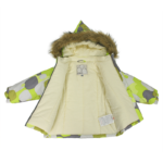 Dviejų dalių komplektas kūdikiams yra idealus triukšmauti sniege! Didelis spalvų ir raštų pasirinkimas. Komplekto pamušalas yra minkštos medvilninės flanelės, o išorinis audinys atsparus vėjui ir vandeniui. Striukė turi 300 g pašiltinimą, o kelnės – 160 g, kad būtų patogu dėvėti. Norėdami užtikrinti sausumą, kelnių sėdimosios dalies siūlės yra klijuotos, kelnės paaukštintu liemeniu, jų apačios viduje taip pat apsiūtos viršutiniu audiniu. Nuimamas gobtuvas su sintetiniu kailiuku yra saugus žaisti lauke – jis tvirtinamas kniedėmis. Kelnės turi reguliuojamas gumines petnešas. Netrukus kieme prasidės šėlsmas!