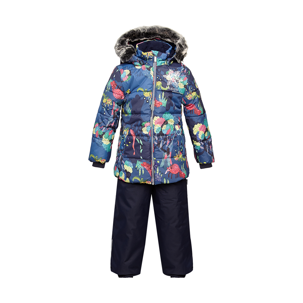 Dviejų dalių komplektas mažoms pricesėms yra idealus važinėtis su rogėmis ir žaisti su sniegu! Komplekto pamušalas yra minkštos medvilninės flanelės, o išorinis audinys atsparus vėjui ir vandeniui. Klijuotos nepraleidžiančios vandens siūlės, reguliuojamos petnešos ir trikotažiniai elastingi rankogaliai palaiko šilumą ir sausumą net ir aktyviai žaidžiant. Nusegamas gobtuvas yra saugus žaisti lauke – jis tvirtinamas kniedėmis, jo sintetinį kailiuką taip pat galima nuimti. Netrukus mėgausitės žaidimais kieme!