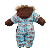 Mažylių kombinezonas su dviem užtrauktukais. Sėdynės ir šoninės siūlės užklijuotos. Kapišonas su nuimamu kailiuku. Užsukami dalys rankovių anga/apačios krašte 62-86 dydžiuose. Šiluma 300g.