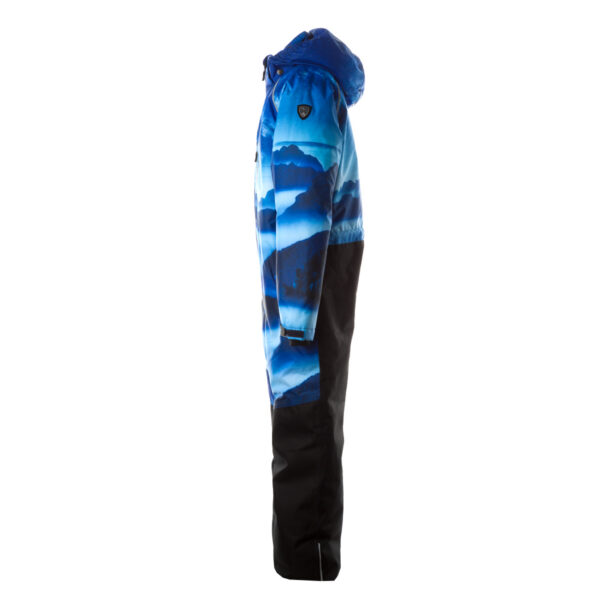Vaikiškas neperšlampamas ir neperpučiamas kombinezonas. Orui laidi išorinė medžiaga. Vidinė dalis iš minkšto pamušalinio audinio. Nuimamas gobtuvas prie apykaklės prisegamas kibiu lipduku. Gobtuvo krašte ir gale įsiūta reguliuojama guminė juostelė. Priekis ir kišenės užsegami vandeniui atspariu užtrauktuku. Rankovių apačia reguliuojama. Rankovių apačioje rankogalis su anga nykščiui. Į juosmenį įsiūta guminė juostelė su skylutėmis sagoms. Apatinė klešnių dalis iš patvaraus. Cordura audinio. Klešnių apačioje apsaugos nuo sniego. Klešnių apačios plotis reguliuojamas užtrauktuku. Vandeniui atsparios siūlės. Viršutinis audinys su šviesą atspindinčiomis detalėmis.