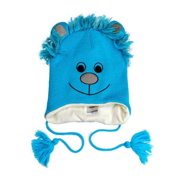 Dviejų spalvų megzta žiemos kepurė mažyliams. Kepurės pamušalas pagamintas iš medvilnės trikotažo, o viršus – iš 50% merino vilnos, 50% akrilo siūlo.