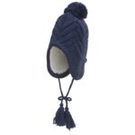 Mažylių megzta žiemos kepurė. Kepurės pamušalas iš medvilnės trikotažo, viršus iš 50% merino vilnos, 50% akrilo siūlų.