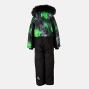 Vaikiškas neperšlampamas ir neperpučiamas kombinezonas. Orui laidi išorinė medžiaga. Vidinė dalis iš minkšto pamušalinio audinio. Nuimamas gobtuvas prie apykaklės prisegamas kibiu lipduku. Gobtuvo krašte ir gale įsiūta reguliuojama guminė juostelė. Rankovių apačioje tamprus rankogalis. Rankovių apačia reguliuojama. Priekyje juostele dengtas užtrauktukas. Priekyje įsiūtos kišenės su užtrauktuku. Į juosmenį įsiūta guminė juostelė su skylutėmis sagoms. Apatinė klešnių dalis iš patvaraus. Cordura audinio. Klešnių apačioje apsaugos nuo sniego. Klešnių apačioje įsiūta guminė juostelė su fiksatoriais. Vandeniui atsparios siūlės. Gobtuvas apkraštuotas nuimamu dirbtiniu kailiu. Viršutinis audinys su šviesą atspindinčiomis detalėmis.